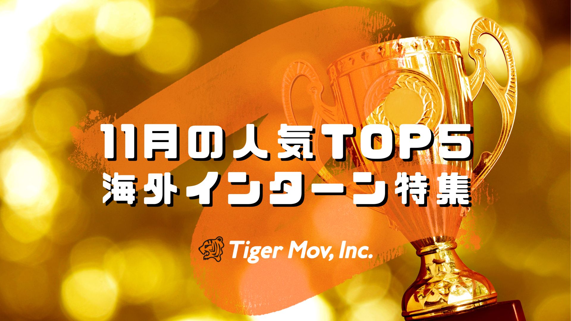 全てのインターンシップのPV数・相談数をもとに 11月の総合人気ランキングTOP5 を発表します!