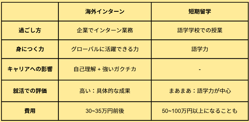 以上、海外インターンと短期留学の違いでした。