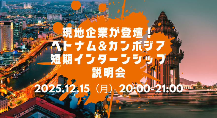 カンボジアの現地企業とタッグを組み、本気で課題解決に挑む2週間。限られた時間だからこそ、成果にこだわる挑戦を。海外での実践に興味はあるけれど、一歩を踏み出せずにいる方にこそおすすめしたいプログラムです。「変わりたい」「試したい」その気持ちを、行動に。未来を動かす第一歩を、ぜひここから踏み出してみませんか。