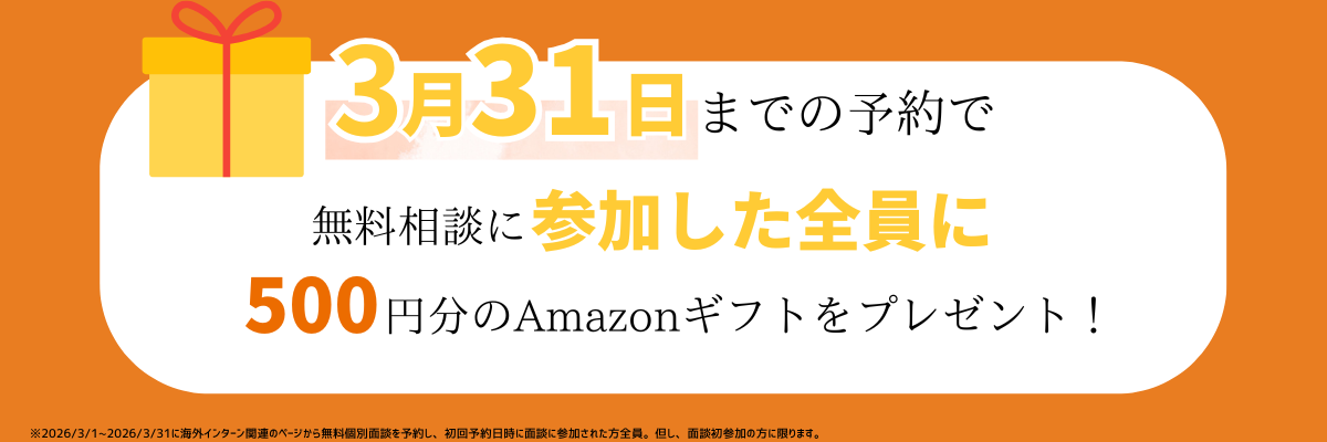 無料個別面談では、海外インターン経験者で、面談の経験も豊富なスタッフが、あなたのベストな選択をサポートします。