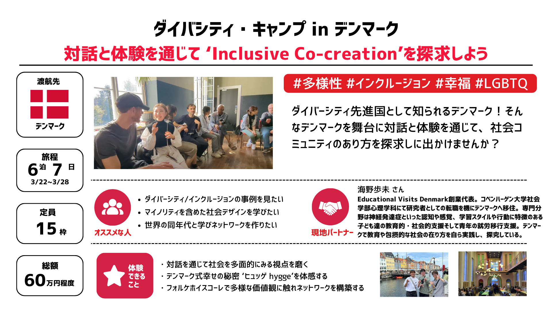 TOP/短期プログラムを見つける/デンマークの短期プログラム一覧/【26年3月開催】ダイバーシティ・キャンプ in デンマーク 〜対話と体験を通じてよりよい社会デザイン’Inclusive Co-creation’を創る〜